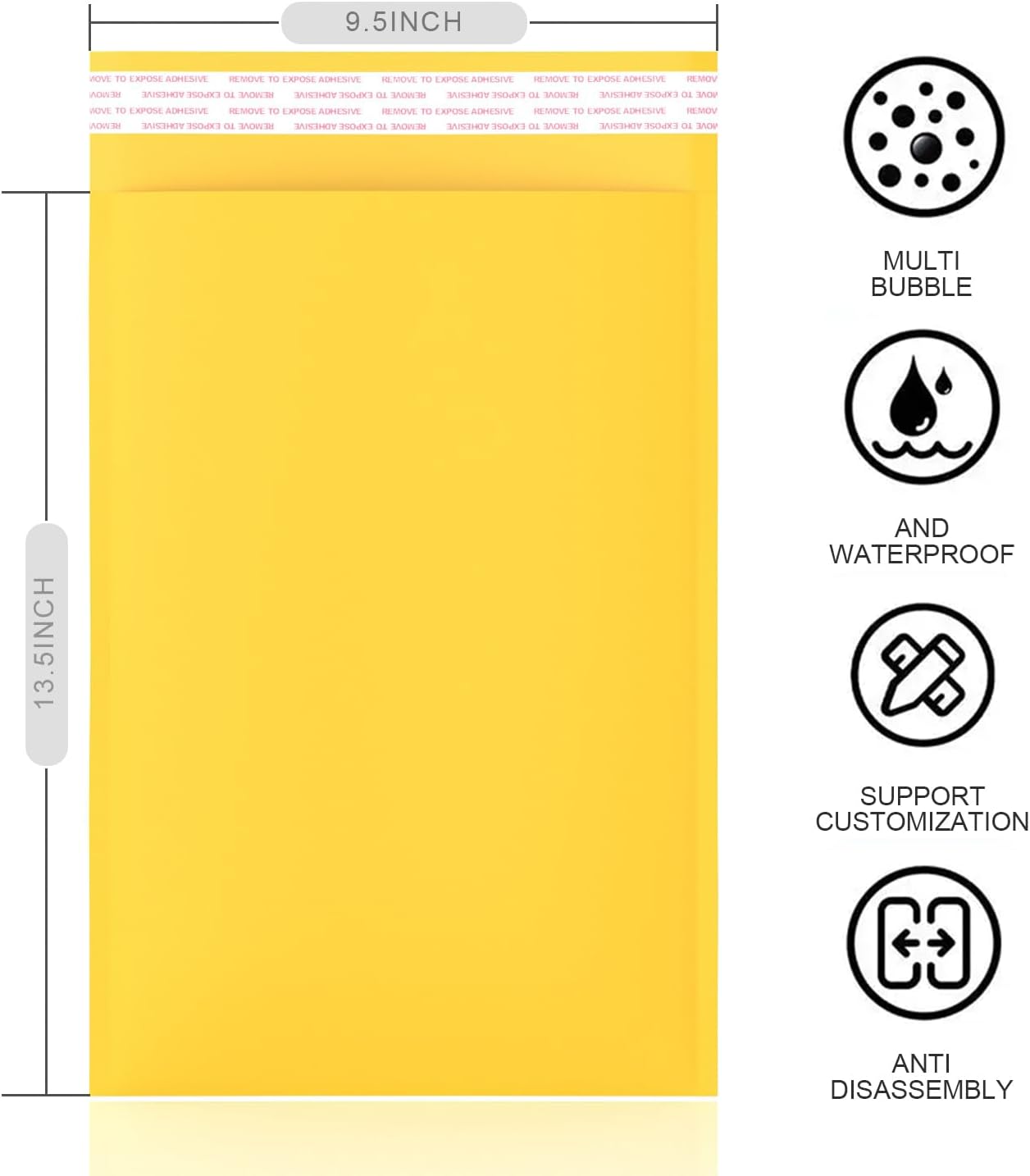 • The bright yellow color enhances package visibility, reducing the risk of loss while creating a cheerful unboxing experience for customers. Elevate your brand’s professionalism and leave a lasting impression with these high-quality, reliable mailers—crafted to support your growing business.