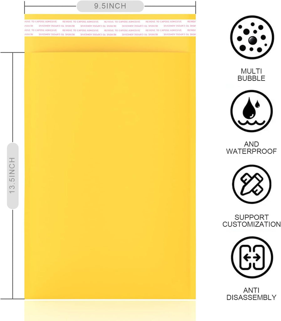 • These vibrant yellow Kraft bubble mailers feature a bright, clean appearance with a smooth, tactile surface—ideal for handwriting, labels, and stamps.
